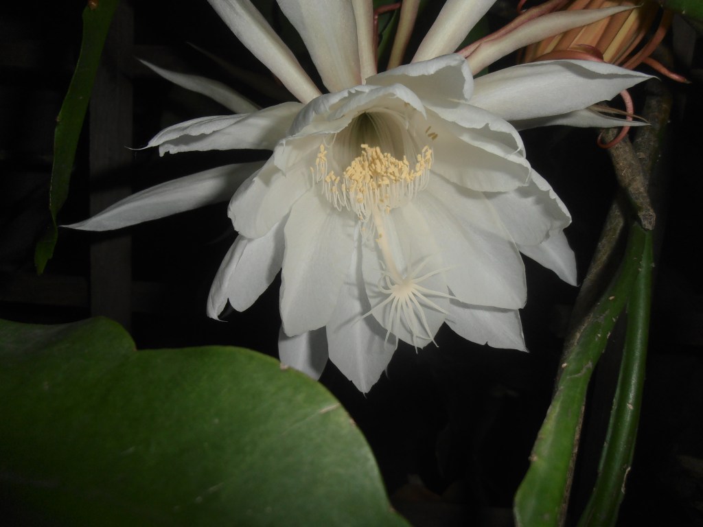 That said, it’s hard to imagine a blossom more beautiful. Some people call it Queen of the Night, which I like because it reminds me of the famous Mozart aria, from The Magic Flute, but I haven’t adopted the nickname myself because night-blooming cereus is what I have known it, since I first encountered it on my in-laws’ patio back in the mid-90s.